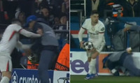 Neto vildi flýta sér að koma boltanum aftur í leik. Boltastrákurinn gerði Neto erfitt fyrir svo portúgalski kantmaðurinn brást við með að ýta honum frá sér og hrifsa boltann af honum.