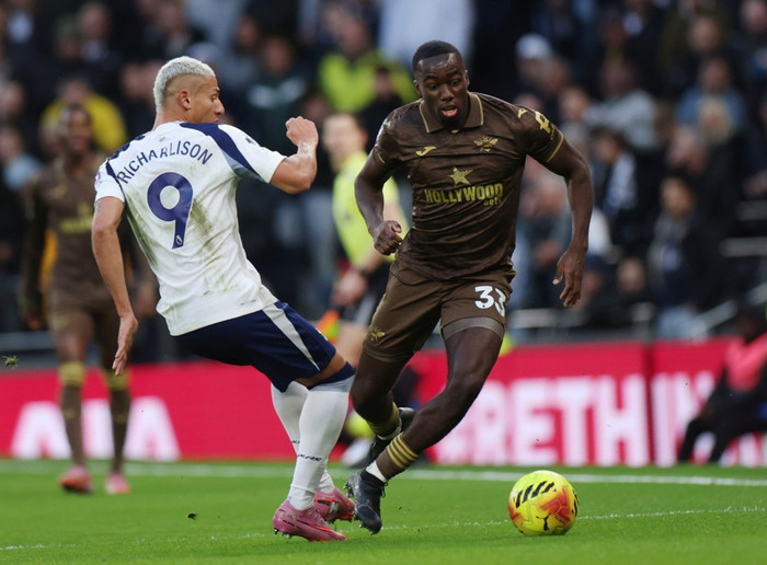 Keane Lewis-Potter átti stórkostlega fyrirgjöf inn á teiginn sem Igor Thiago missti af en Kayode var fyrir aftan hann og átti þennan þrumuskalla sem Jose Sá kom engum vörnum við.
