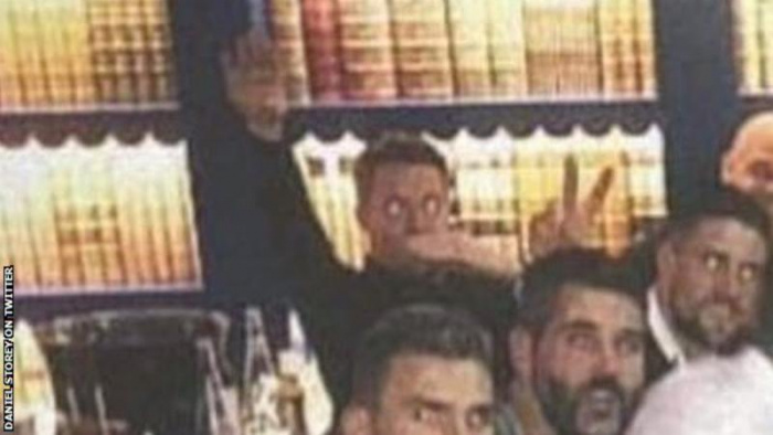 Hennessey var myndaður í vafasömum stellingum en Max Meyer, liðsfélagi hans, birti myndina á Instagram.