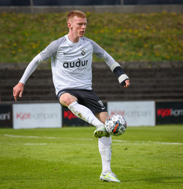 Logi Hrafn er með brotið bátsbein í hendi sem útskýrir spelkuna sem hann spilaði í.