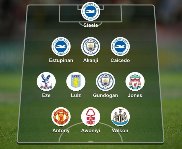 Miðjumaður: Eberechi Eze (Crystal Palace) - Fór með himinskautum og skoraði bæði mörkin í 2-0 sigri gegn Bournemouth. Fékk stuðningsmenn Palace til að standa á fætur trekk í trekk.