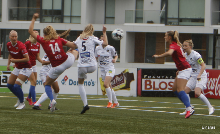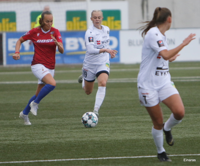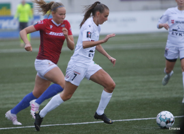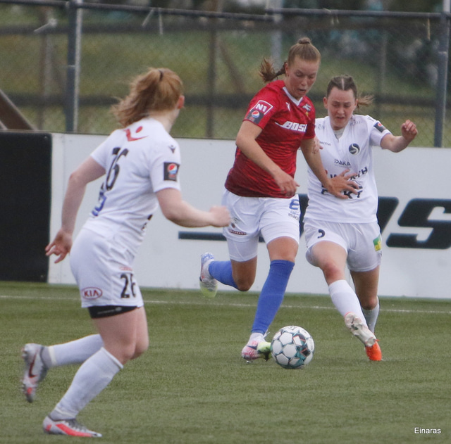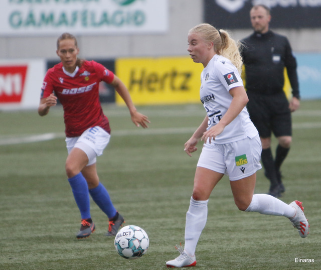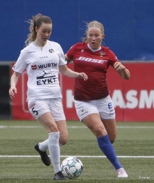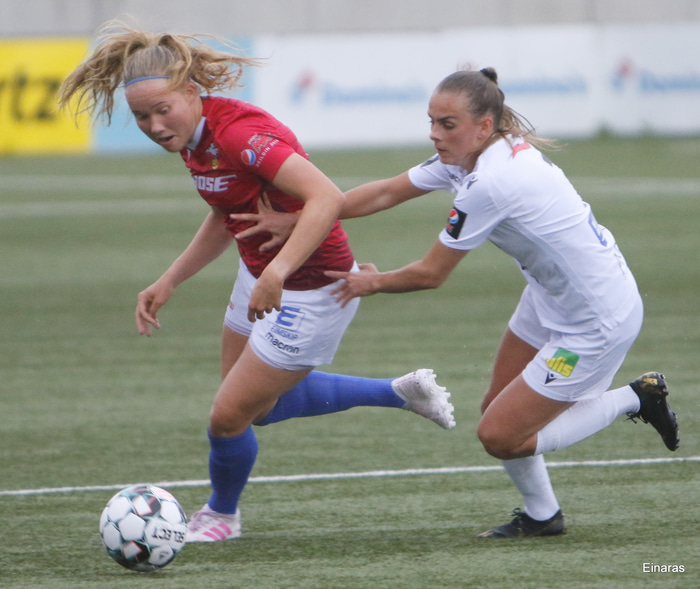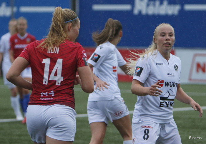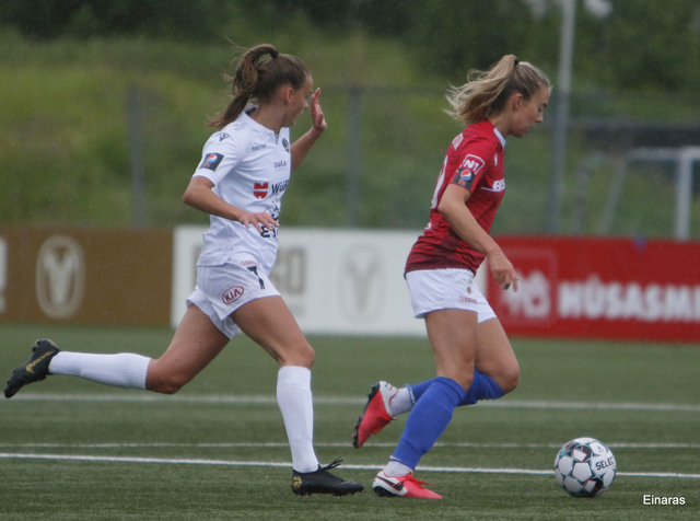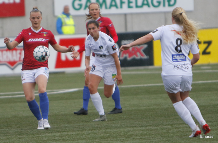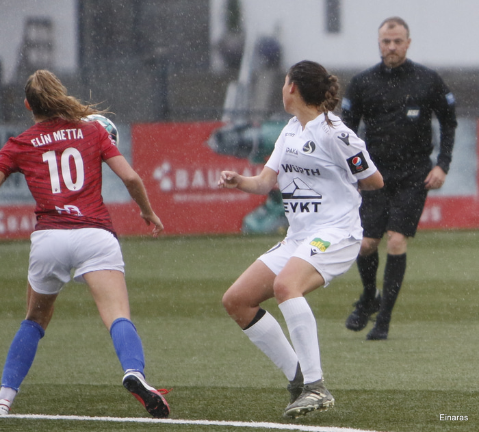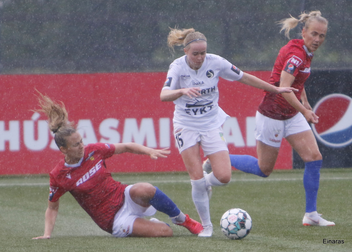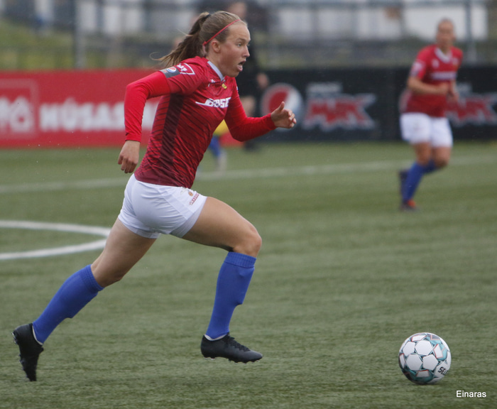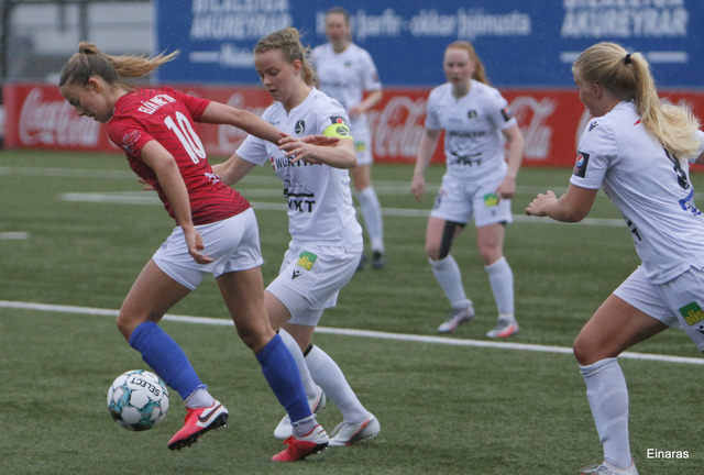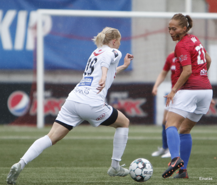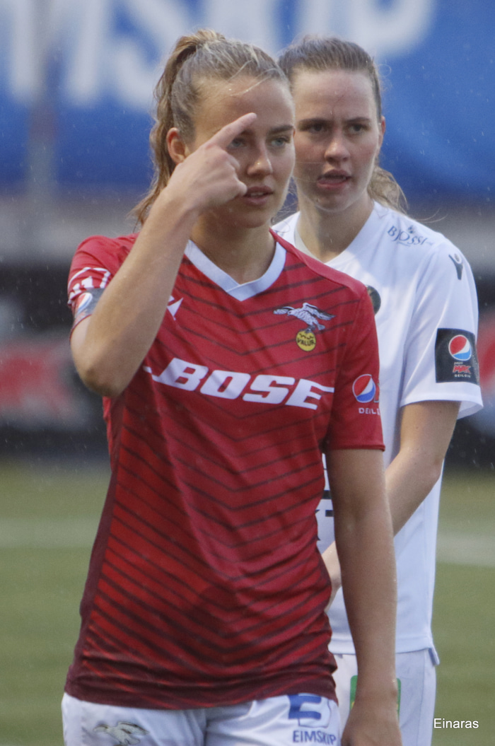 Valur og Fylkir mættust í Pepsi Max-deild kvenna í gær og urðu lokatölur 1-1 jafntefli. Valur lék frá 2. mínútu manni færri þar sem Elísa Viðarsdóttir fékk reisupassann strax í byrjun leiks.