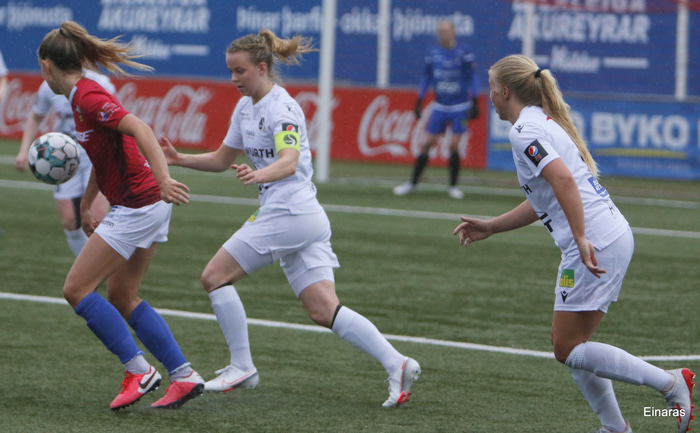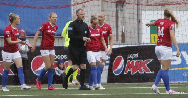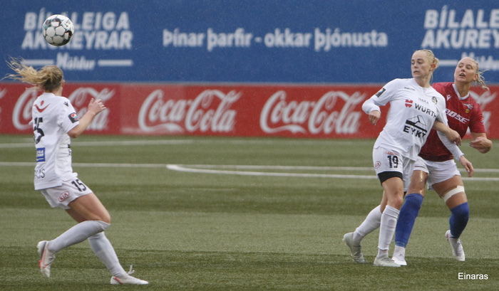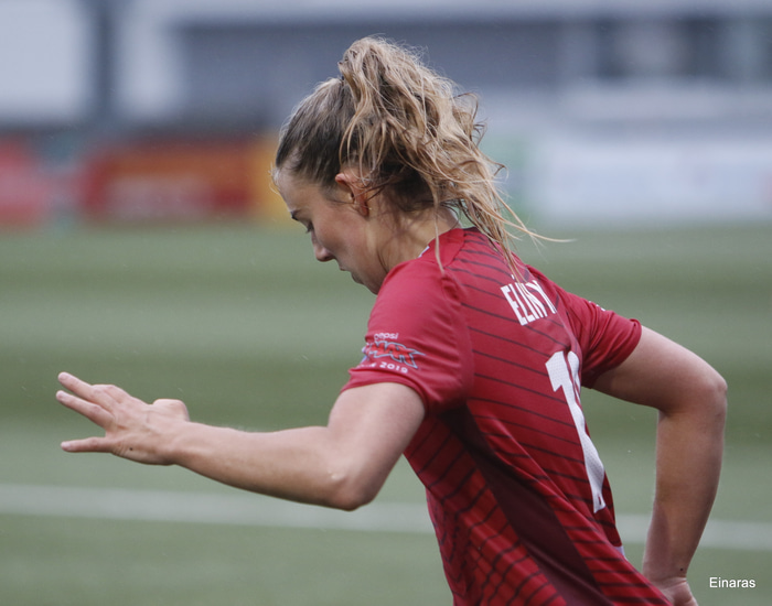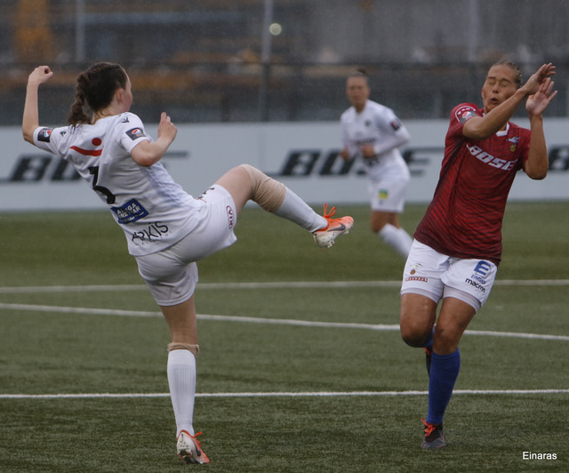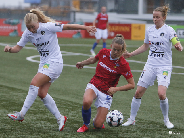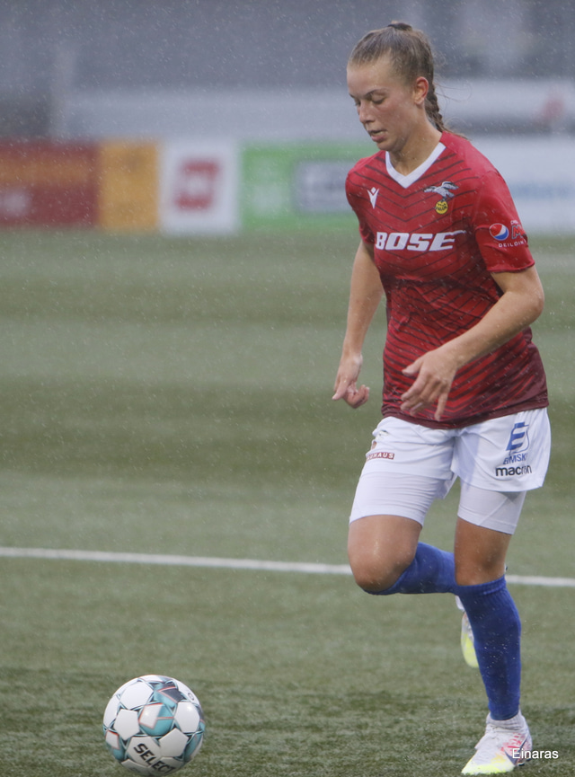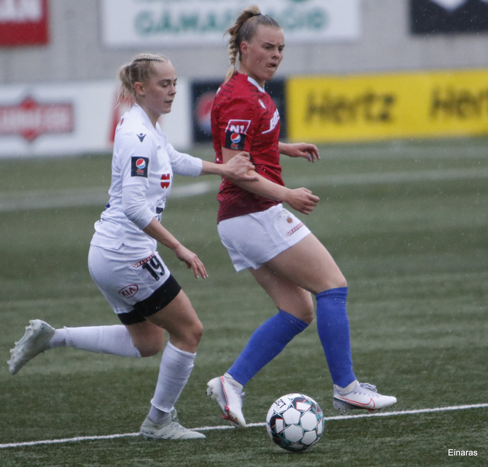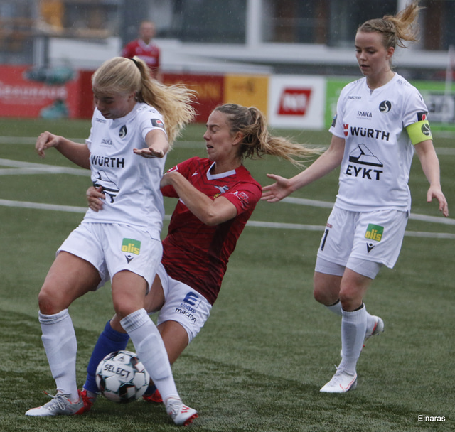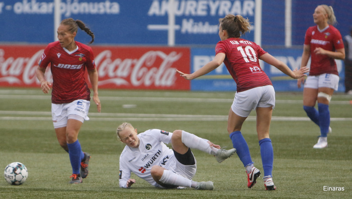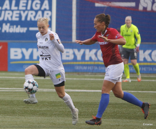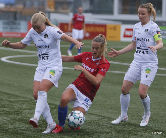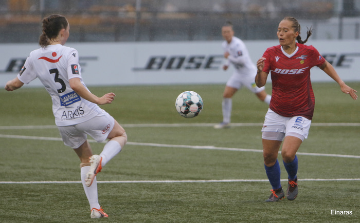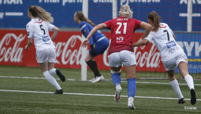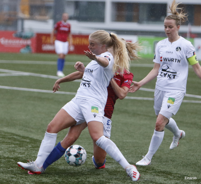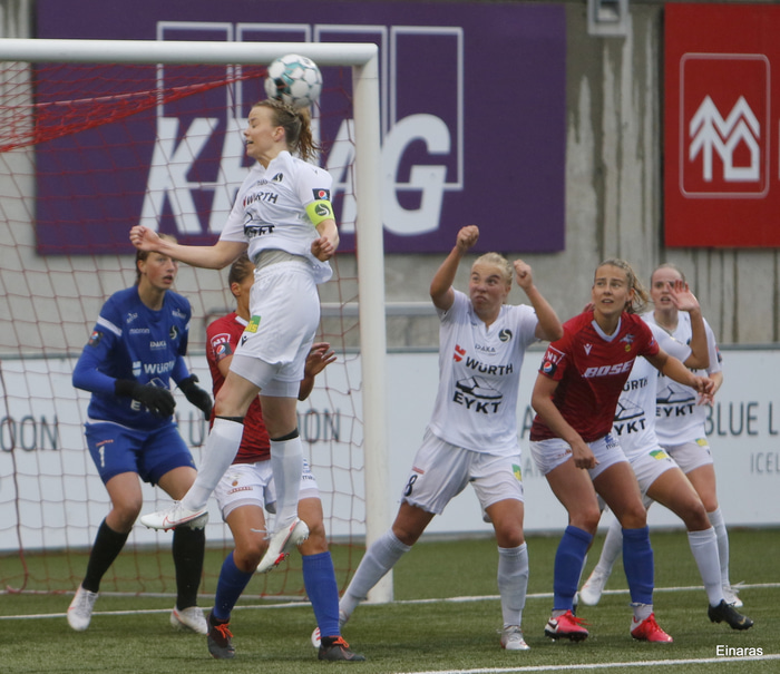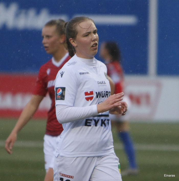 Valur og Fylkir mættust í Pepsi Max-deild kvenna í gær og urðu lokatölur 1-1 jafntefli. Valur lék frá 2. mínútu manni færri þar sem Elísa Viðarsdóttir fékk reisupassann strax í byrjun leiks.