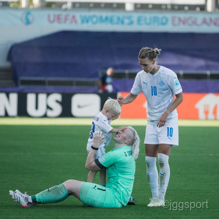 „Ég ákvað að vera hérna á hótelinu og fá manninn minn og strákinn í heimsókn í staðinn fyrir að hitta alla í Manchester. Ég er búin að spila mikið í síðustu tveimur leikjum og ég hugsaði að þetta væri það besta fyrir mig til að ná eins mikilli orku upp og ég gæti. Ég er ekki búin að eyða heilum degi með syni mínum í þrjár vikur þannig það virkilega notalegt og kærkomið að fá hann loksins á hótelið."