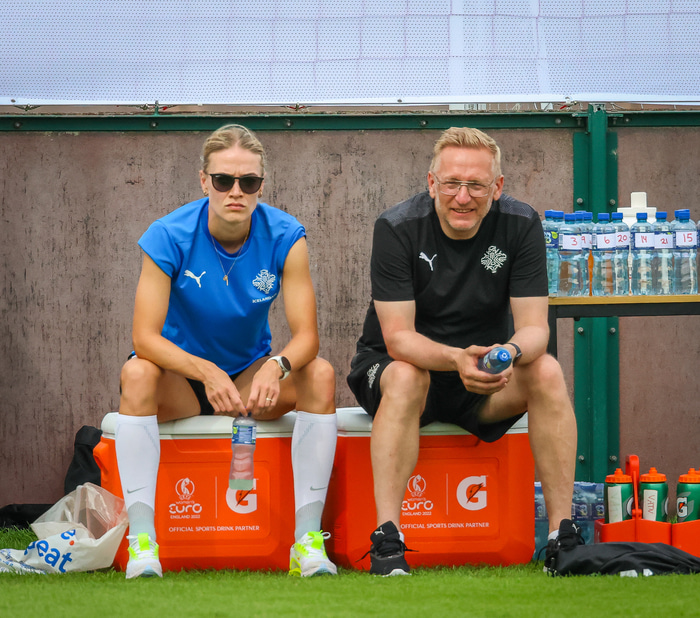 „Í gær snerist þetta fyrst og fremst um að ná orkunni aftur upp eftir leikinn, reyna sofa eitthvað og borða vel. Þær sem spiluðu minna tóku æfingu af mikilli ákefð í gær á meðan við sem spiluðum mikið tókum létta æfingu. Við fórum í ísbað, vorum að teygja, rúlla og fengum meðferðir og svona - reyna jafna sig eins mikið og hægt er eftir leikinn," sagði Dagný.