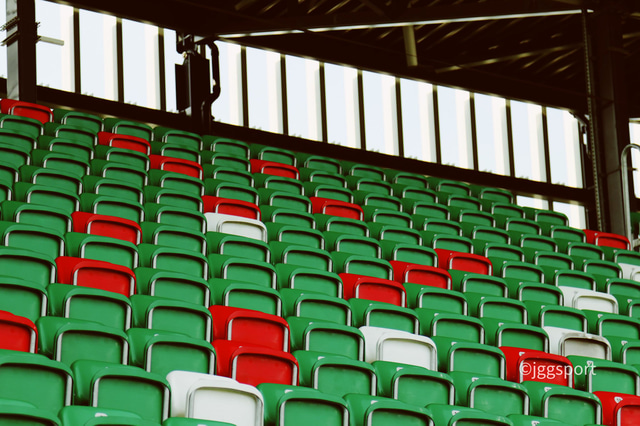 Fótboltavöllurinn tekur rúmlega 11 þúsund manns í sæti og arkitektúrinn er virkilega flottur. Hér er allt mjög nýtt, flott, ferskt og það er engin hlaupabraut.