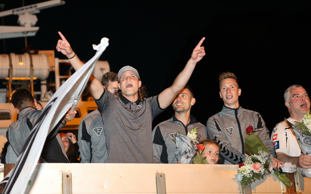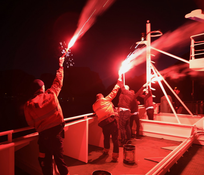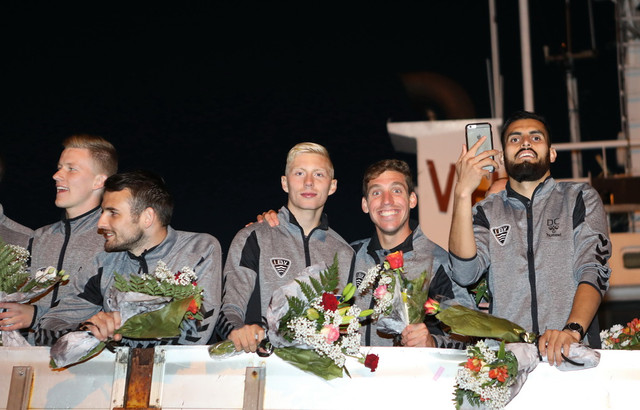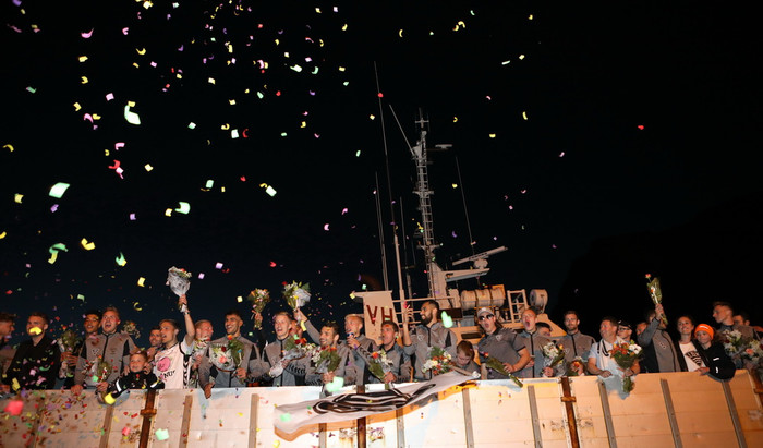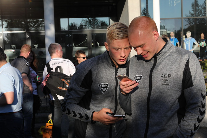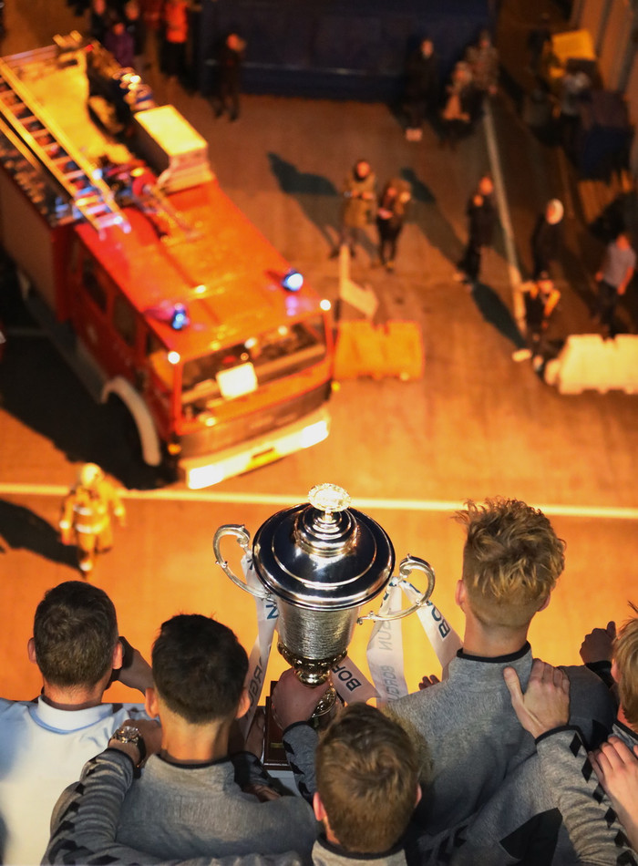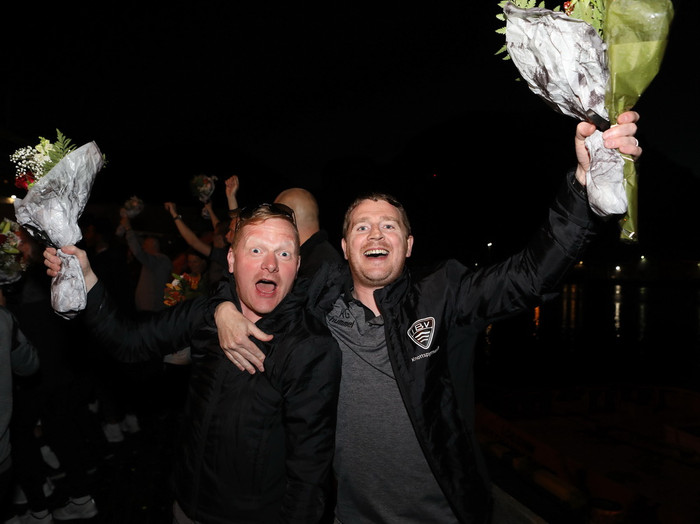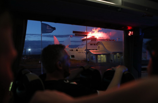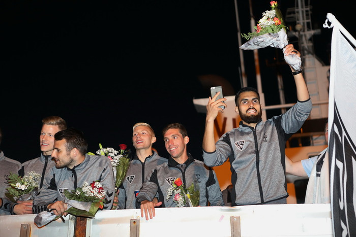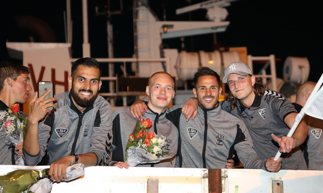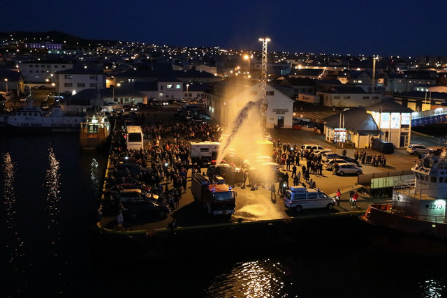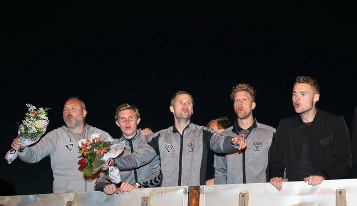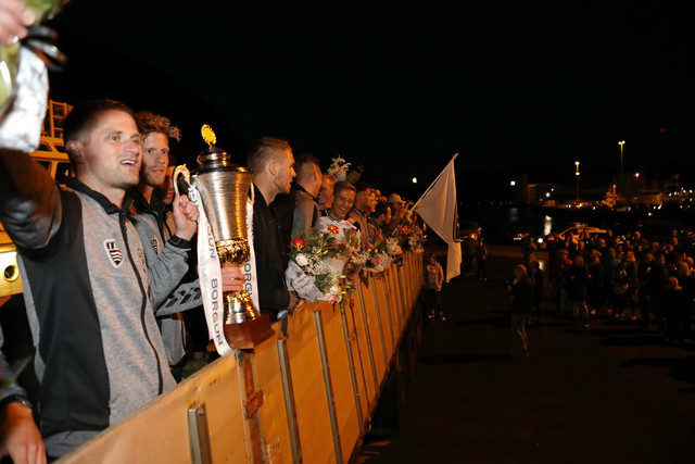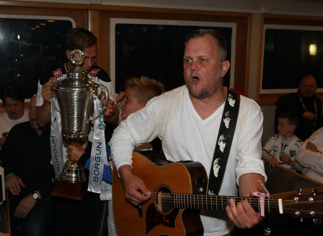 Seint um kvöldið var svo mikið húllumhæ í Vestmannaeyjum þegar liðið sigldi inn með Herjólfi. Hér að neðan má sjá myndir Ragga Óla af þessum mögnuðu móttökum.