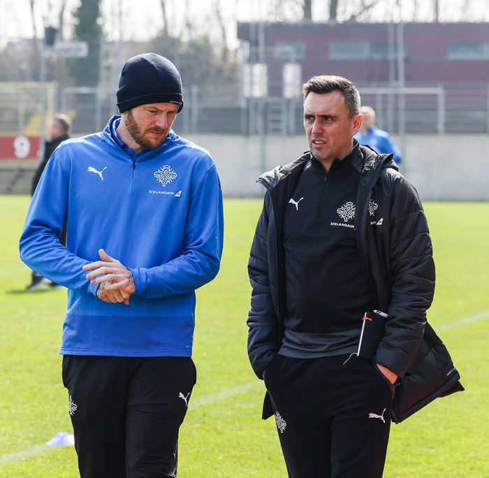 „Það vita allir hvað Aron Einar getur gefið þessu liði. Það var aldrei spurning að velja leiðtoga eins og Aron í liðið," sagði Arnar Þór Viðarsson, landsliðsþjálfari, á fréttamannafundi í dag.