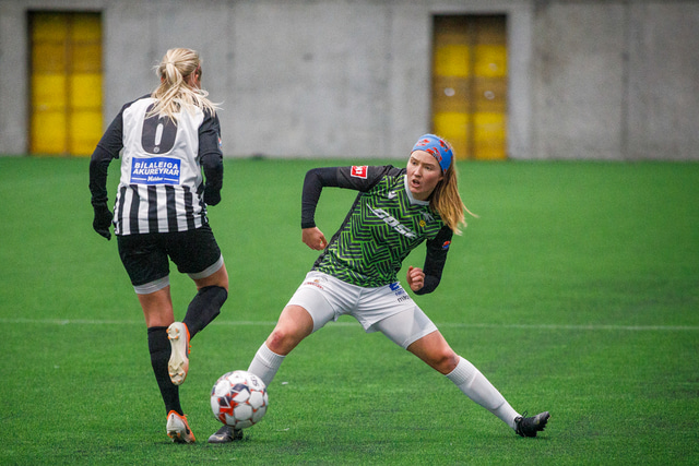 Guðný Árnadóttir, leikmaður Vals, og Laufey Björnsdóttir leikmaður KR voru valdar menn leiksins og fengu þær Bose hátalara að launum.
