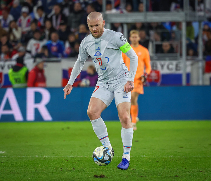 Aron kom inn á í stöðunni 4-1 fyrir Slóvökum og lék um hálftíma. Aron hefur ekkert spilað með félagsliði sínu Al Arabi síðan í maí og hans einu mínútur á vellinum fyrir kvöldið síðan í maí komu í landsleik gegn Liechtenstein í síðasta mánuði.