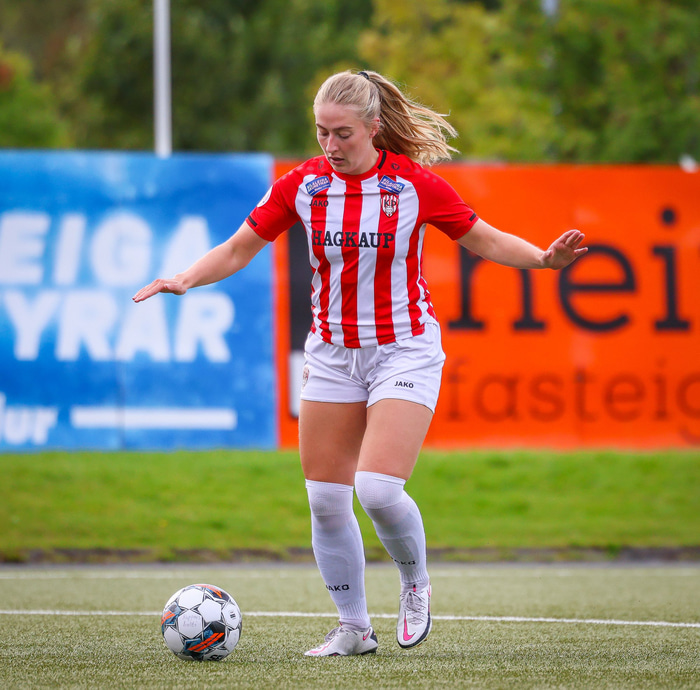 „Hún naut þess að vera á Íslandi, að vera hluti af þessu liði og henni leið líka vel utan vallar. Hún byrjaði líka að taka þátt í kirkjustarfi og það var margt jákvætt við það að koma aftur hingað, frekar en að hoppa í einhverja óvissu. Það er gott fyrir hana að koma hingað og spila mikið, bæta sig sem leikmaður, fá mikið sjálfstraust og svo líklegast fara eitthvað annað aftur svo."
