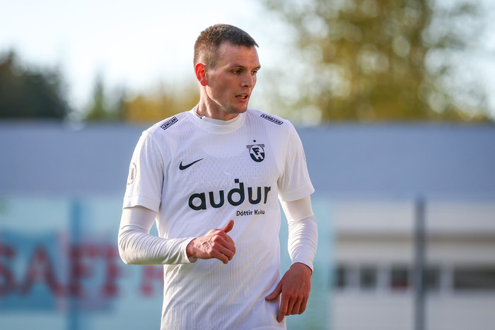 Símon Logi Thasaphong kom Njarðvíkingum yfir í fyrri hálfleiknum og stóðu leikar þannig þegar gengið var til búningsherbergja.