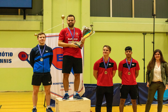 Núna er röðin komin að besta borðtennisleikmanni Íslandssögunnar, Guðmundi Stephensen. Hann sneri aftur á Íslandsmótið á dögunum eftir tíu ára fjarveru og sýndi að hann hefur engu gleymt. Hann lék á als oddi og vann öruggan sigur. Þetta var 21. titill Guðmundar í einliðaleik.