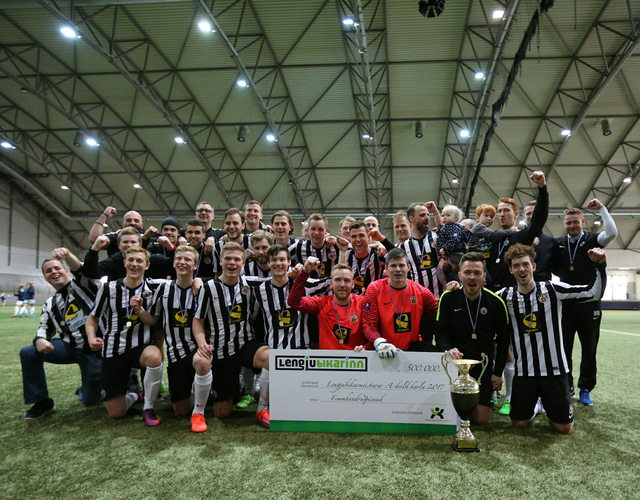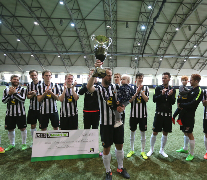 KR er Lengjubikarmeistari A-deildar karla annað árið í röð. Þeir höfðu betur gegn Grindavík í úrslitaleik í Egilshöllinni í dag.