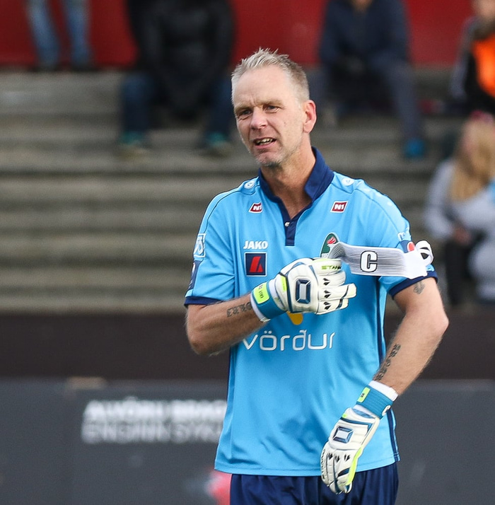 „Það er geðveikt að verja víti, þú veist það sem gamall markvörður að það er geggjað," segir Gunnleifur við Tómas Meyer sem er fyrrum markvörður.