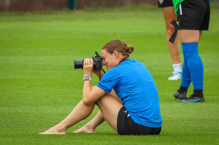 Sif Atladóttir, sem er í hópnum núna, byrjaði þann leik og Ásta Árnadóttir, sem er núna sjúkraþjálfari liðsins, var í bakverði.