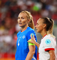 „Við vorum auðvitað mjög ánægðar með sigurinn gegn Þýskalandi en við vissum hvað væri í húfi í dag. Þær vinna sinn leik, Þýskaland, og við tökum þá bara annað sætið. Besta annað sætið í öllum riðlinum og við erum ánægðar að vera fimmta besta liðið," sagði Sveindís Jane Jónsdóttir, leikmaður Íslands, við Fótbolta.net í gær.
