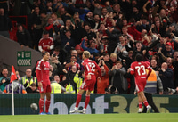 Virgil van Dijk tryggði Liverpool stigin þrjú með skallamarki í uppbótartíma leiksins og ætlaði þakið að rifna af leikvanginum.