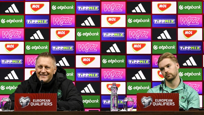 Heimir Hallgrímsson landsliðsþjálfari Íra var kátur eftir glæsilegan endurkomusigur gegn Ungverjalandi í undankeppni HM í gær.