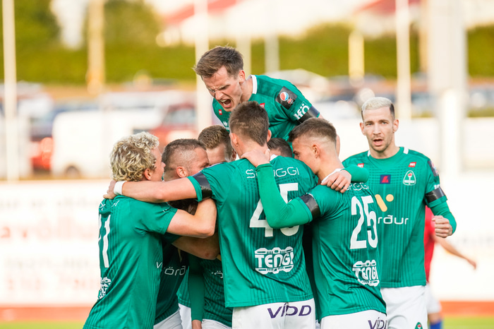 Tveimur mínútum síðar tvöfaldaði Gísli Eyjólfsson forystuna eftir fyrirgjöf frá Viktori Karli Einarssyni.