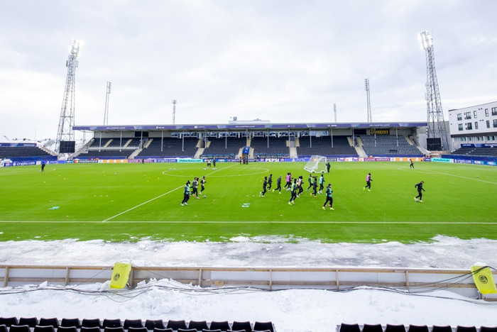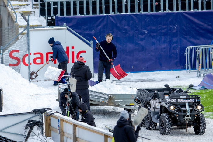 Borgin Bodö er staðsett rétt norðan heimskautsbaugs og þar hefur verið mikil snjókoma. Starfsmenn og sjálfboðaliðar Bodö/Glimt hafa þurft að moka snjó dag og nótt í aðdraganda leiksins.