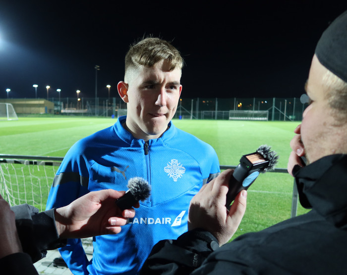 „Gírinn er mjög góður eins og alltaf, við hlökkum mjög mikið til. Við náttúrulega spiluðum tvisvar við Ísrael 2022 í Þjóðadeildinni. Ég tel bara mjög góða möguleika," sagði Ísak Bergmann Jóhannesson í viðtali eftir landsliðsæfingu Íslands í Búdapest í dag.