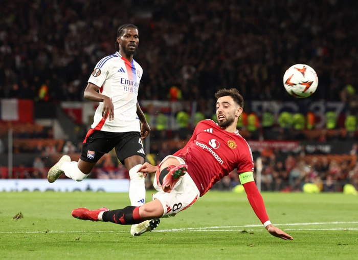 „Það hefur verið mikið rætt um hvort Fernandes sé rétti fyrirliðinn fyrir Manchester United. Hann er leikmaðurinn sem hefur komið í veg fyrir að þetta tímabil geti talist hörmulegt og hefur nú bundið enda á allan vafa um að hann sé sá rétti. Ef hann hafði ekki sannfært alla um að hann sé rétti leiðtoginn fyrir liðið þá gerði hann það í endurkomunni mögnuðu gegn Lyon."