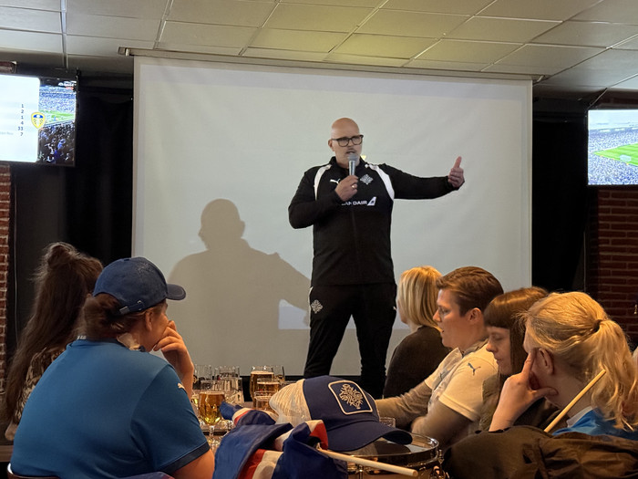Ólafur Helgi Kristjánsson, aðstoðarþjálfari kvennalandsliðsins, mætti á fund Hagsmunasamtaka Knattspyrnukvenna og Tólfunnar í dag. Þar fór hann yfir það hvernig íslenska liðið ætlar að leggja upp leikinn gegn stjörnum prýddu liði Englands. Það er ljóst að vinnan verður lögð í varnarleikinn, en vopnin frammi eru beitt.
