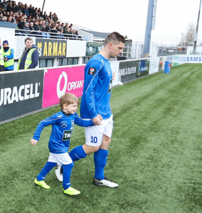 Segðu okkur frá skemmtilegu atviki sem gerst hefur í leik: Það má nefna það þegar ég lagði upp mark á móti Wales U19 með legghlífinni, og alveg talsvert fyrir aftan miðju. Ansi stoltur af því.