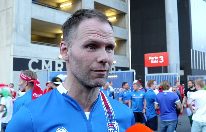 Við spurðum hann um hans fyrstu tilfinningar eftir að sjá boltann fara inn í markið framhjá Hannesi Halldórssyni, markverði íslands.