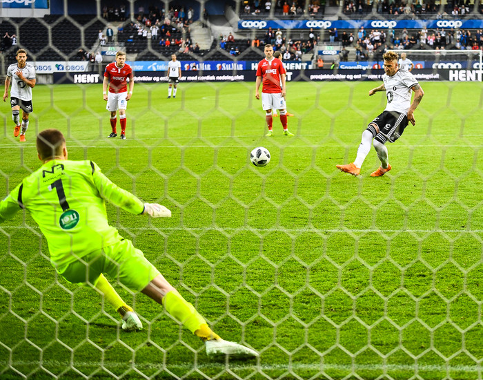 Þegar staðan var 2-1 fyrir Rosenborg en Valur á leiðinni áfram samanlagt dæmdi dómarinn vítaspyrnu í uppbótartima.