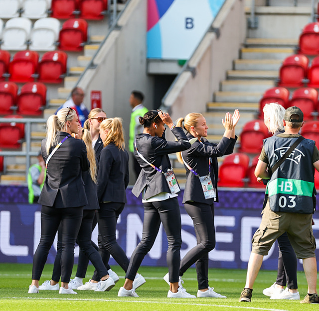 Hérna á eftir munu þær spila við Frakkland í lokaleik í riðlinum á Evrópumótinu.