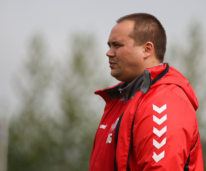 ,,Bæði lið buðu ekki upp á nægilegan góðan leik fyrir áhorfendur. Ég hefði viljað sjá meiri gæði í leiknum, völlurinn var smá blautur. Við hefðum viljað halda boltanum betur innan liðsins. Mér fannst vera þreyta í báðum liðum og oft frekar mikið áhugaleysi," sagði Jóhann Kristinn sem fannst samt ágætis barátta í liðinu,