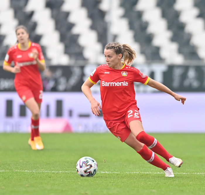 Sandra María er mikið í kringum byrjunarliðið hjá Leverkusen eftir að hún byrjaði að spila sem hægri bakvörður.