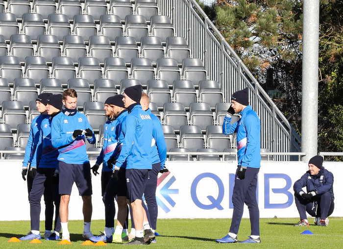 Þá staðfesti Erik Hamren að hann ætlar að halda áfram með sama leikkerfi og var notað gegn Belgíu og spilað verður áfram með þrjá hafsenta.