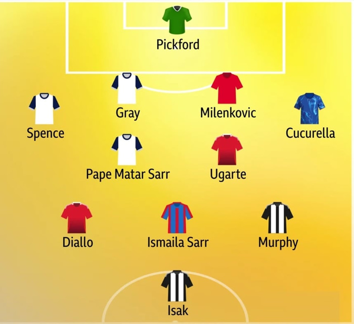 Varnarmaður: Marc Cucurella (Chelsea) - Hefur verið mjög öflugur með Chelsea á tímabilinu og sýnt stöðugleika. Hann skoraði í 2-1 sigri gegn Brentford og þó hann hafi látið reka sig útaf í uppbótartíma þá kemst hann í úrvalsliðið.