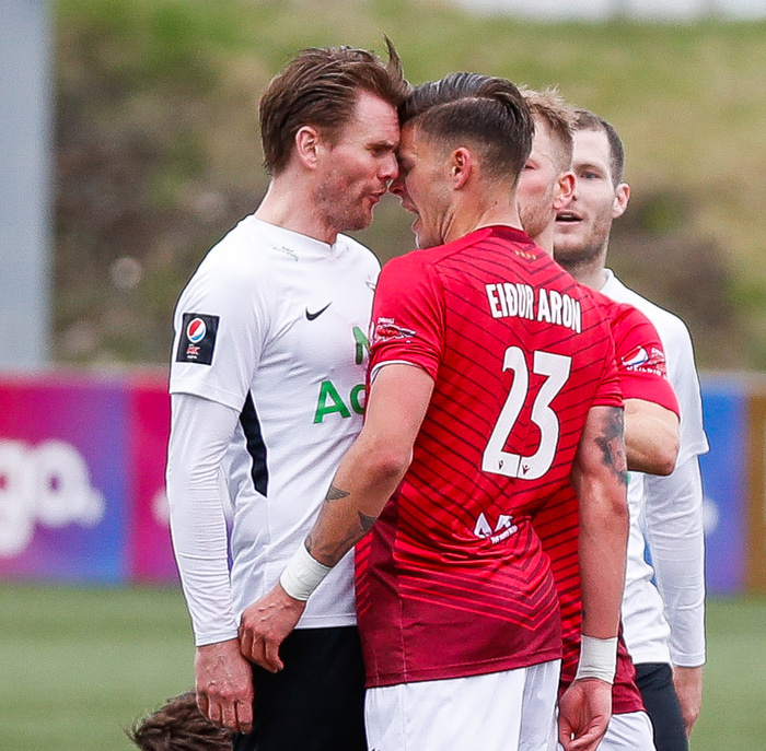 Valgeir var einnig spurður út í samskipti sín við Davíð Þór Viðarsson. Einhverjir muna eftir því þegar Davíð reif Valgeir úr stuttbuxunum í leik árið 2019. Svona lýsti Valgeir atvikinu á sínum tíma:„... það var smá vandræðalegt þegar Davíð Þór Viðarsson reif mig úr stuttbuxunum í leik og þegar maður horfði á það í Pepsi mörkunum."