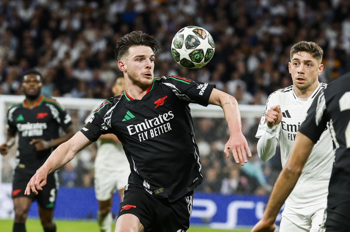 Arsenal lagði Real Madrid í 8-liða úrslitum Meistaradeildarinnar en Rice skoraði tvennu í fyrri leiknum og var frábær í seinni leiknum en hann var valinn besti maður leiksins í báðum leikjunum.