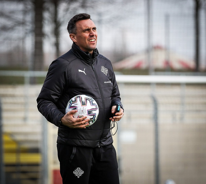 „Það var haft samband við KSÍ og spurt hvort það mætti ræða við mig. Ég ræddi það við Guðna og Klöru þegar þetta kom upp. Við vísuðum því svo til baka. Ég er nýbyrjaður í nýju spennandi starfi með A-landslið karla. Það er ákveðið langtímaverkefni sem ég tók að mér og þetta fór aldrei lengra en að vera einhverjar þreifingar. Það er alls ekki þannig að ég sótti um, ég hef aldrei sótt um starf á ævinni,"