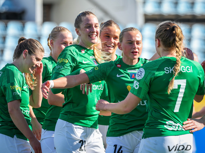 Blikar fóru betur af stað og komust í tveggja marka forystu í fyrri hálfleik. Birta Georgsdóttir skoraði eftir um 40 sekúndna leik og tvöfaldaði Ásta Eir Árnadóttir forystuna á 22. mínútu með skemmtilegu skoti eftir hornspyrnu.