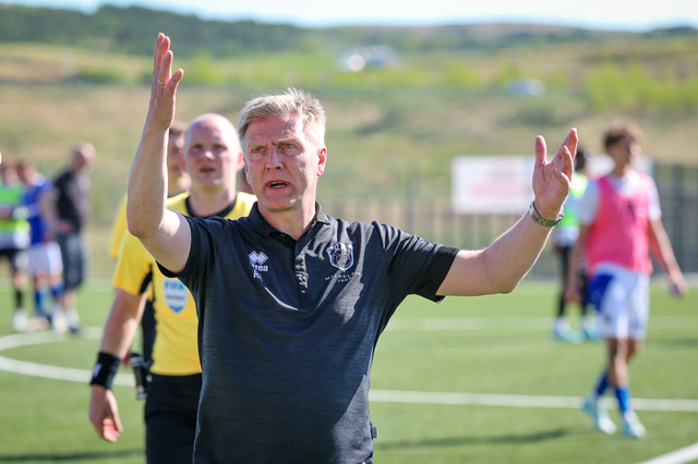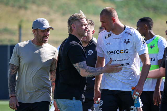 „Þeir lenda haus í haus inn í teig. Svo svimaði honum inn á vellinum og lagðist niður. Hann var aðeins vankaður. Líklega heilahristingur," sagði Davíð Smári um Grauberg. „Arnór Borg fór aftan í læri. Það er pínu svekkjandi en sem betur fer ekki alvarleg meiðsli, ekkert í neinu eða neitt svoleiðis. Við héldum það. fyrst en það er sem betur fer ekki það."