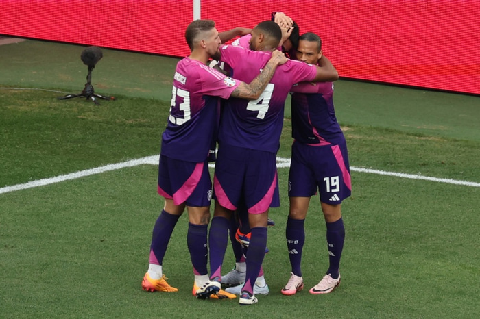 Jamal Musiala kom Þjóðverjum yfir en Ungverjar voru alls ekki sáttir en þeir vildu meina að Ilkay Gundogan, sem lagði upp markið, hafi brotið af sér í aðdragandanum.