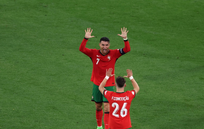 Hinn 39 ára gamli Cristiano Ronaldo var á sínum stað í liði Portúgals í gær þegar liðið vann dramatískan sigur á Tékklandi á EM í Þýskalandi.