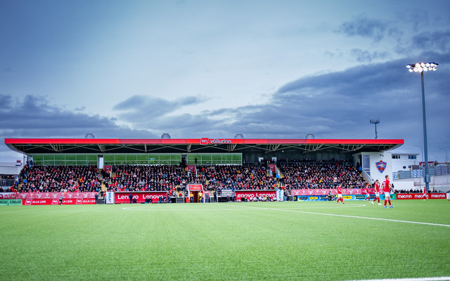 Það tafðist hinsvegar að setja upp merkingar nýja styrktaraðilans utan á leikvanginn en landsleikjahléið hefur verið nýtt í endurhalningu.