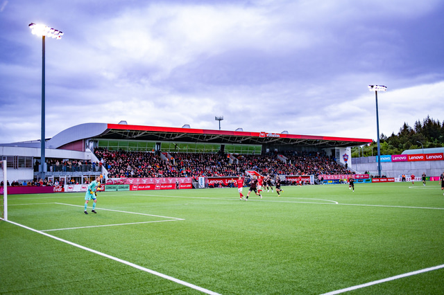 Valur fékk Víking í heimsókn í stórleik umferðarinnar í Bestu-deild karla í gær en það sem vakti helst athygli þegar komið var að vellinum var ný ásýnd vallarins og starfsmanna hans.