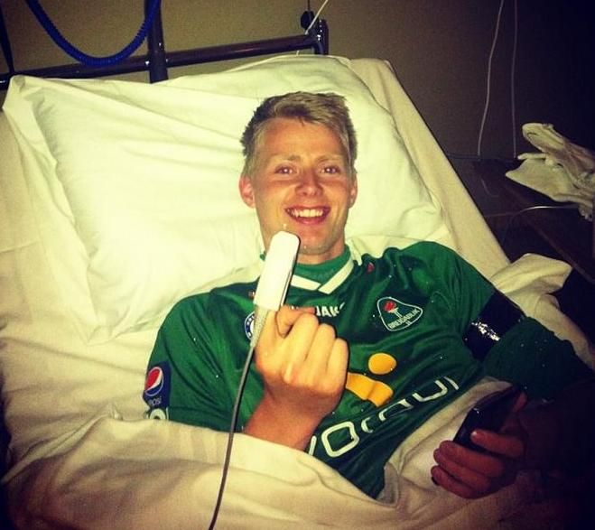 Mynd: Elfar Árni brosandi á sjúkrahúsinu