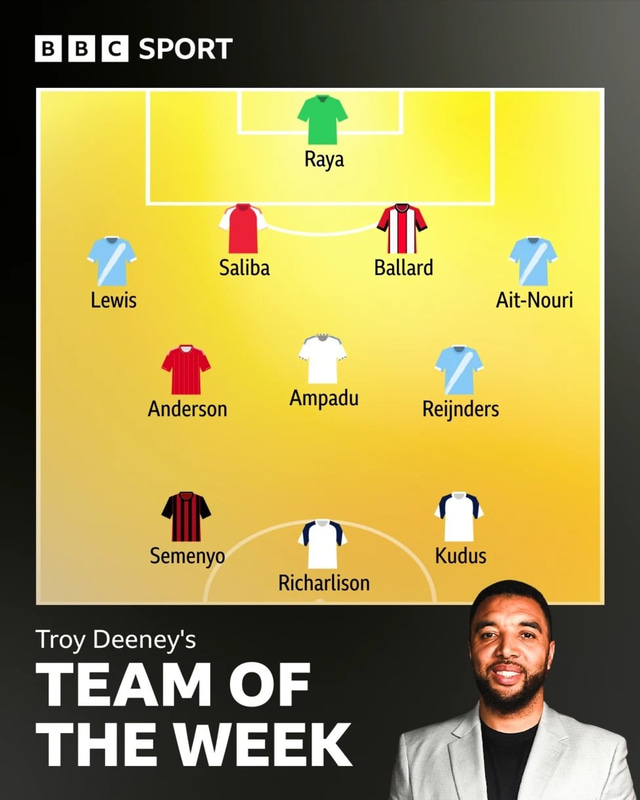 Markvörður: David Raya (Arsenal) - Átta markvörslur í 1-0 útisigri gegn Manchester United á Old Trafford.