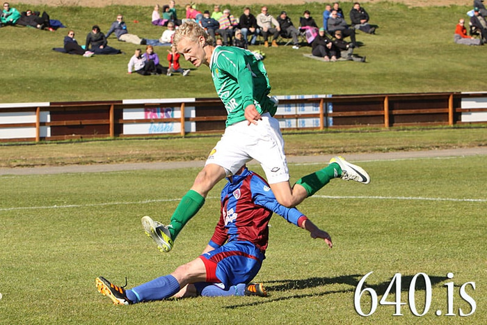 Eftir jafnan fyrri hálfleik var það íslenska liðið sem náði forystunni á lokamínútu hálfleiksins. Fyrirliðinn, Samúel Kári Friðjónsson, tók langt innkast og Ásgeir Sigurgeirsson leikmaður Völsungs var fyrstur að átta sig og kom boltanum í netið.