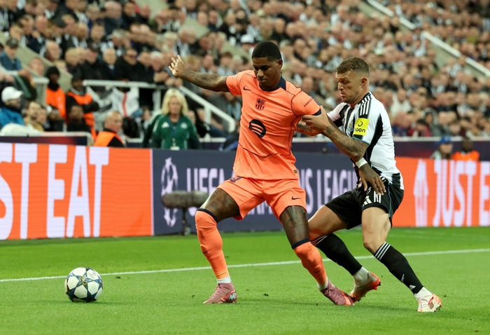 Marcus Rashford skoraði bæði mörk Barcelona í 0-2 sigrinum gegn Newcastle í Meistaradeildinni í gær.