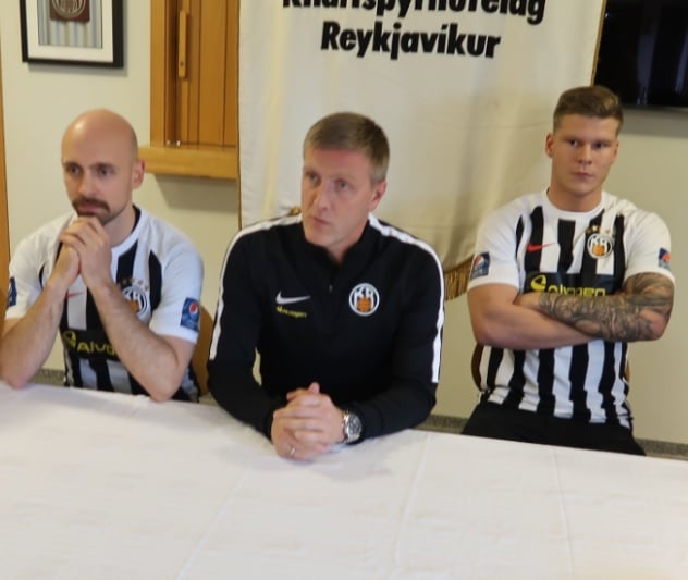 Sóknarmaðurinn Björgvin Stefánsson og bakvörðurinn Kristinn Jónsson voru kynntir sem nýir leikmenn KR á fréttamannafundi hjá félaginu í dag.